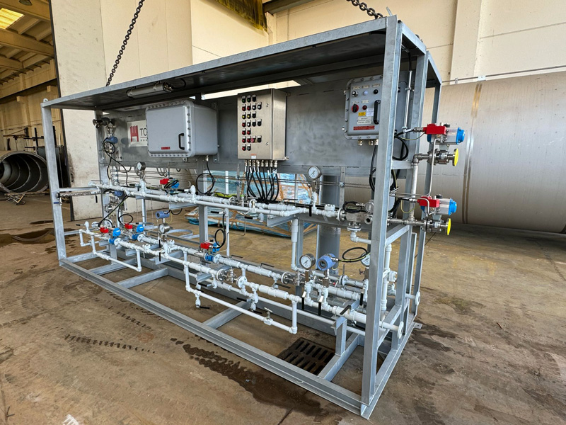 L’attrezzatura FFG è normalmente installata in una struttura in acciaio al carbonio con tettoia di protezione solare/meteo.