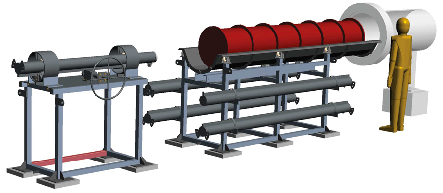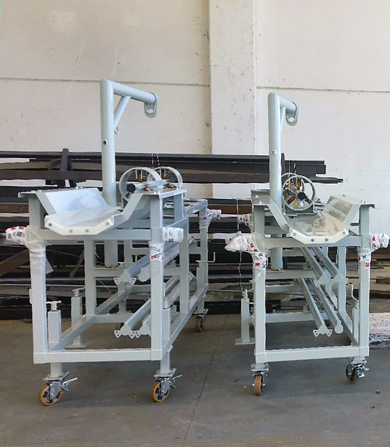 Questa tipologia di Handling consente l’infilaggio del Pig all’interno delle trappole di lancio, utilizzando una culla di alloggiamento scorrevole su guide posta su un telaio fissato a terra ed equipaggiate con palo di spinta retrattile azionato a mezzo di idoneo argano manuale.