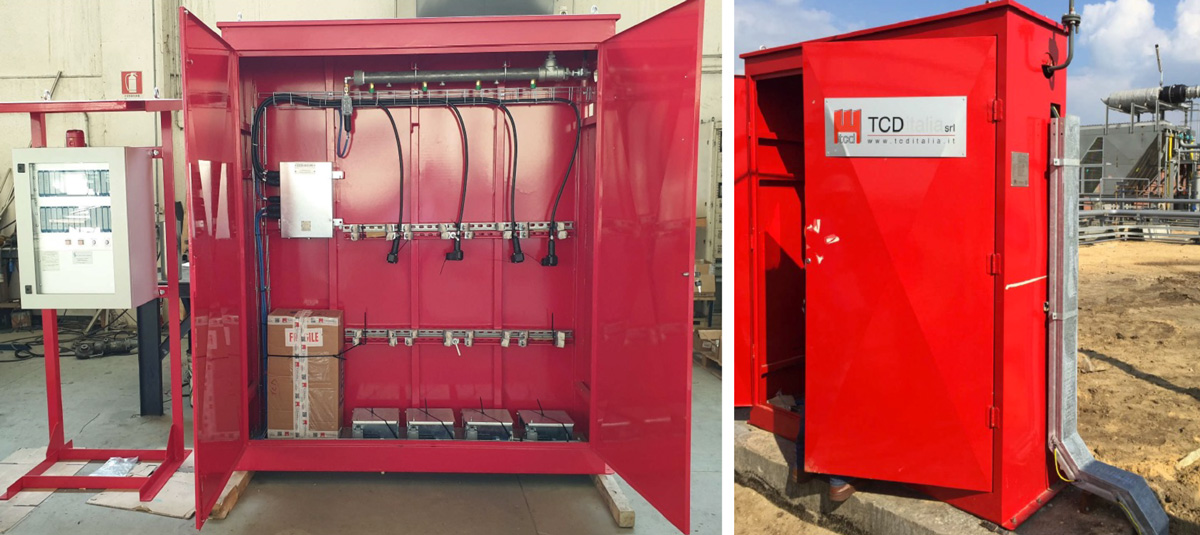 I segnali della termocoppia vengono ritrasmessi al pannello di controllo del sistema di spegnimento dove vengono utilizzati interruttori di temperatura per avviare la CO2 scarica rapida (è importante considerare che la velocità della CO2 all’uscita delle bottiglie è su un intervallo di 1Kg/sec).